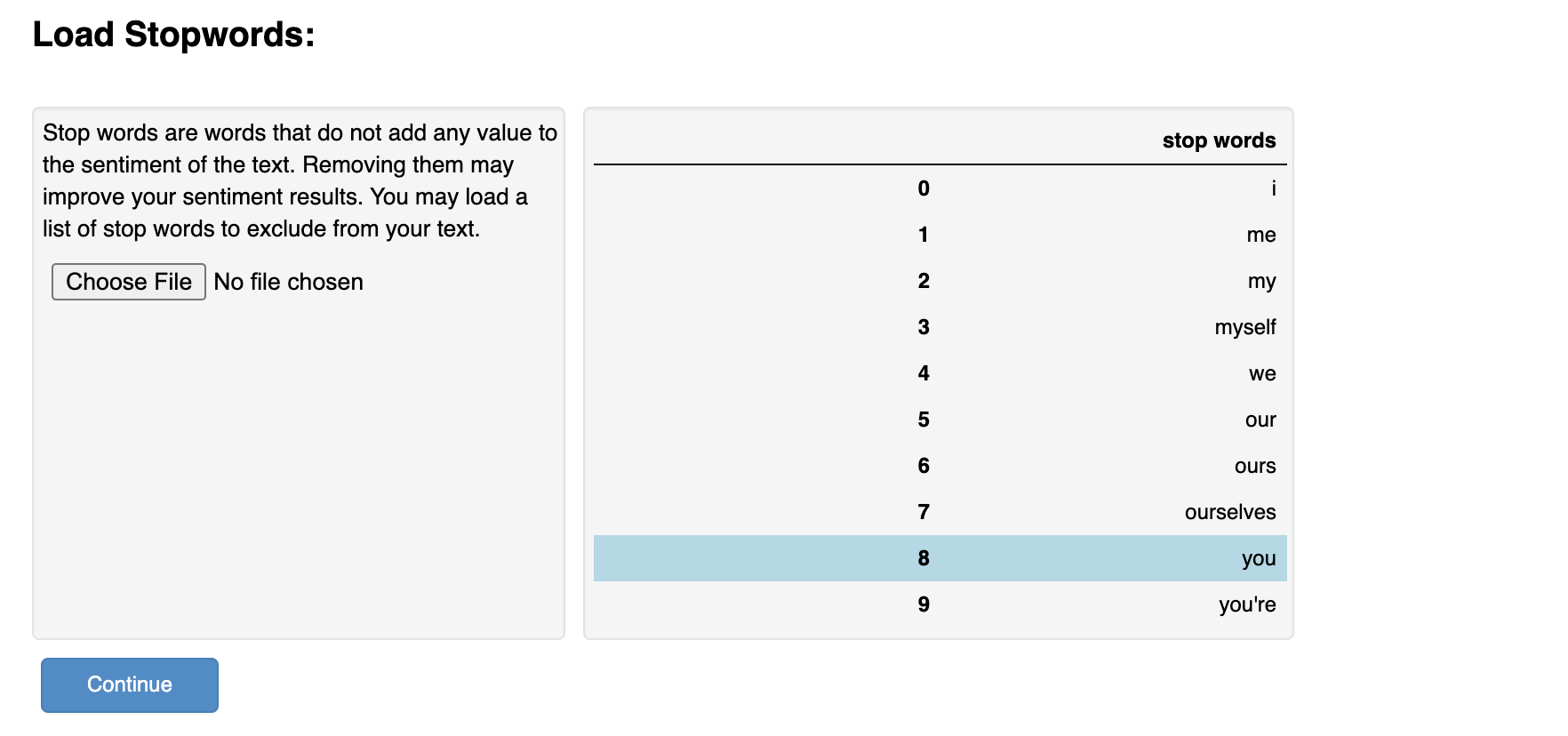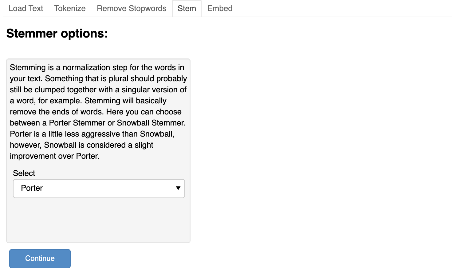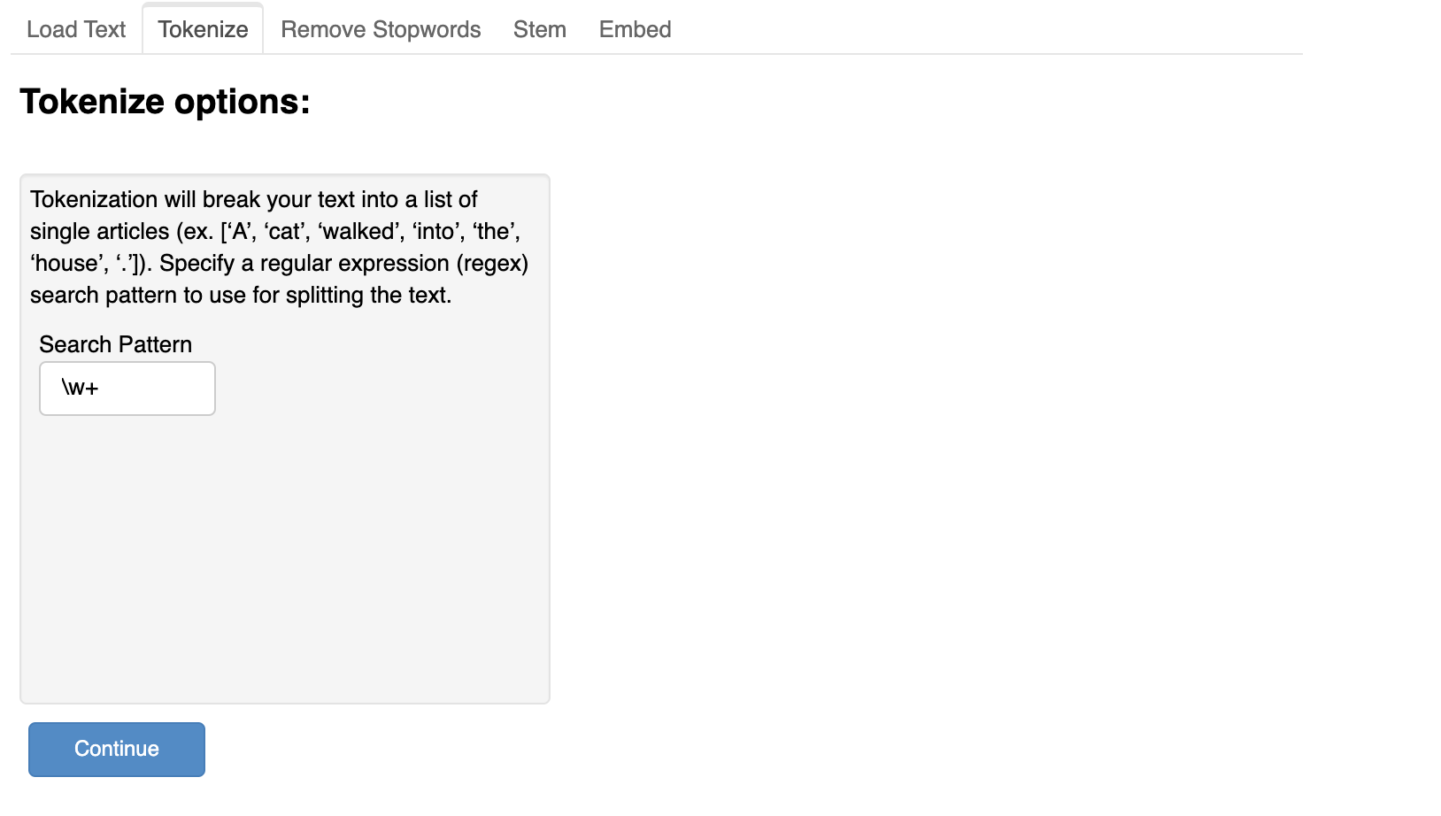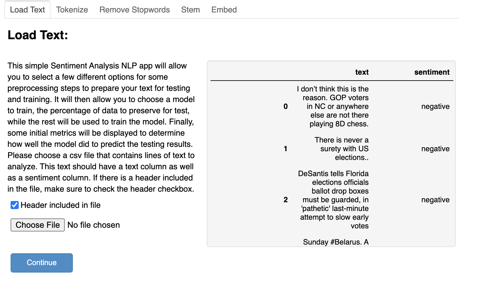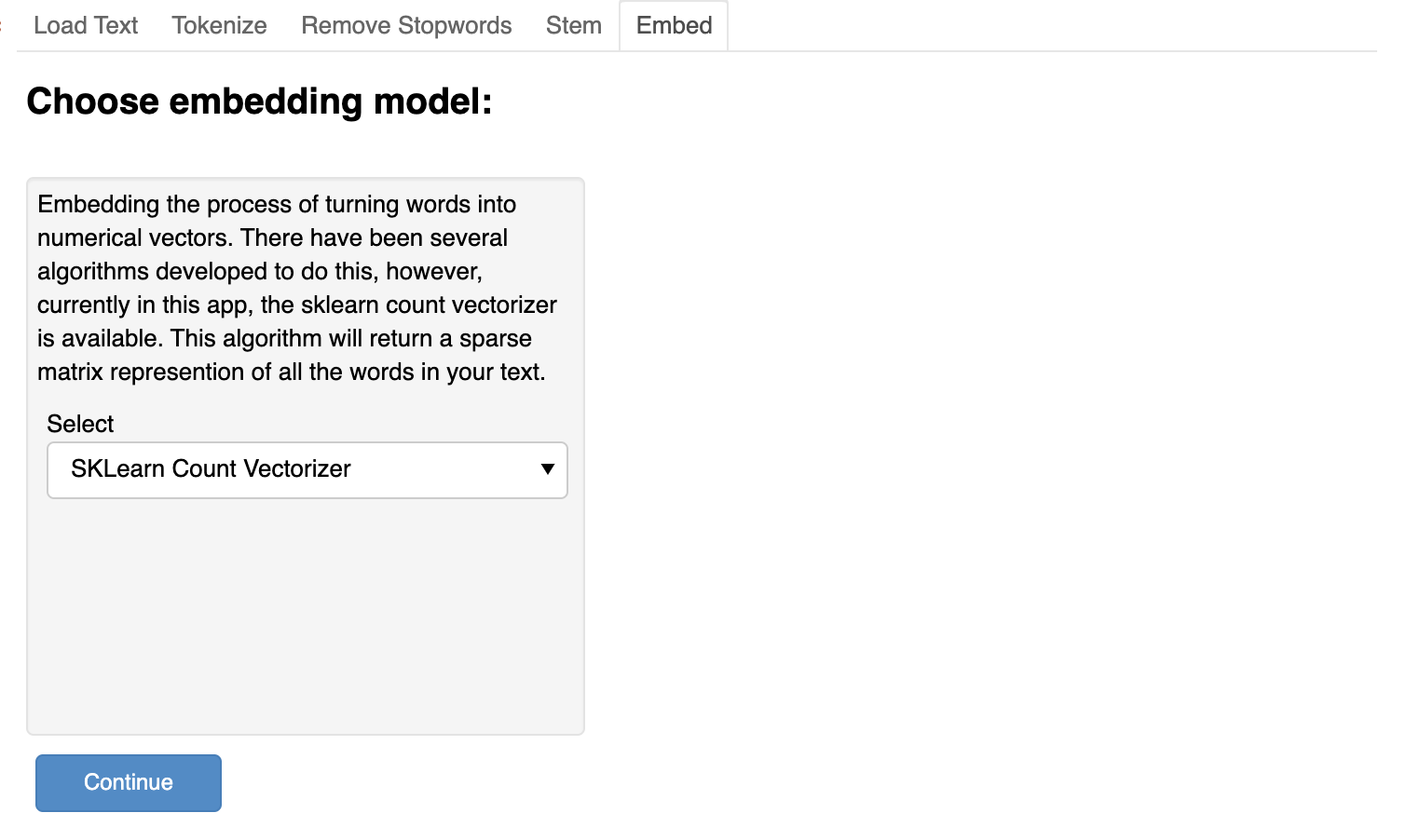 We have built a custom two-stage Panel app for pre-processing NLP (Natural