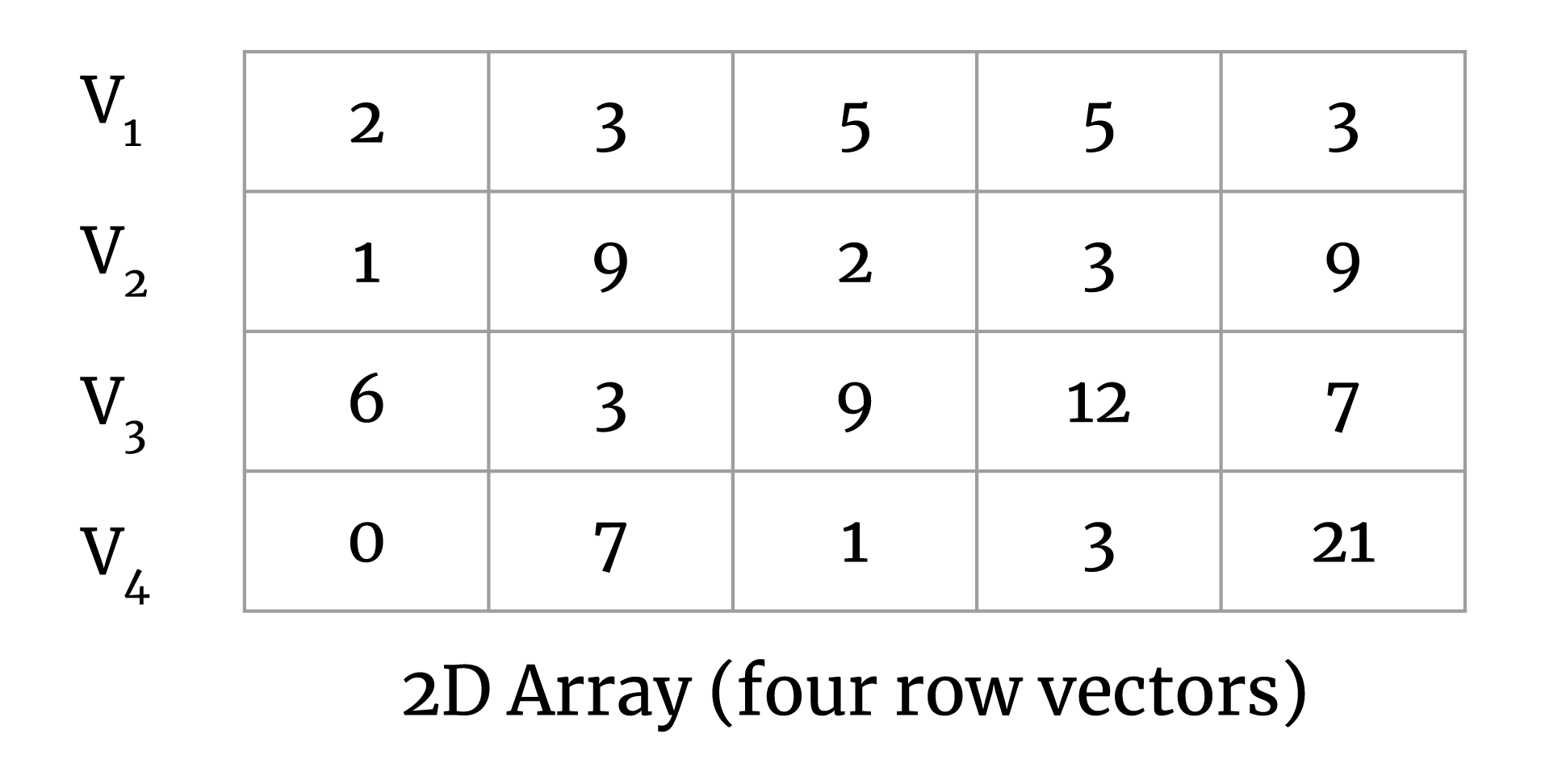 To simplify this a bit, consider a set of vectors in a 2D matrix: