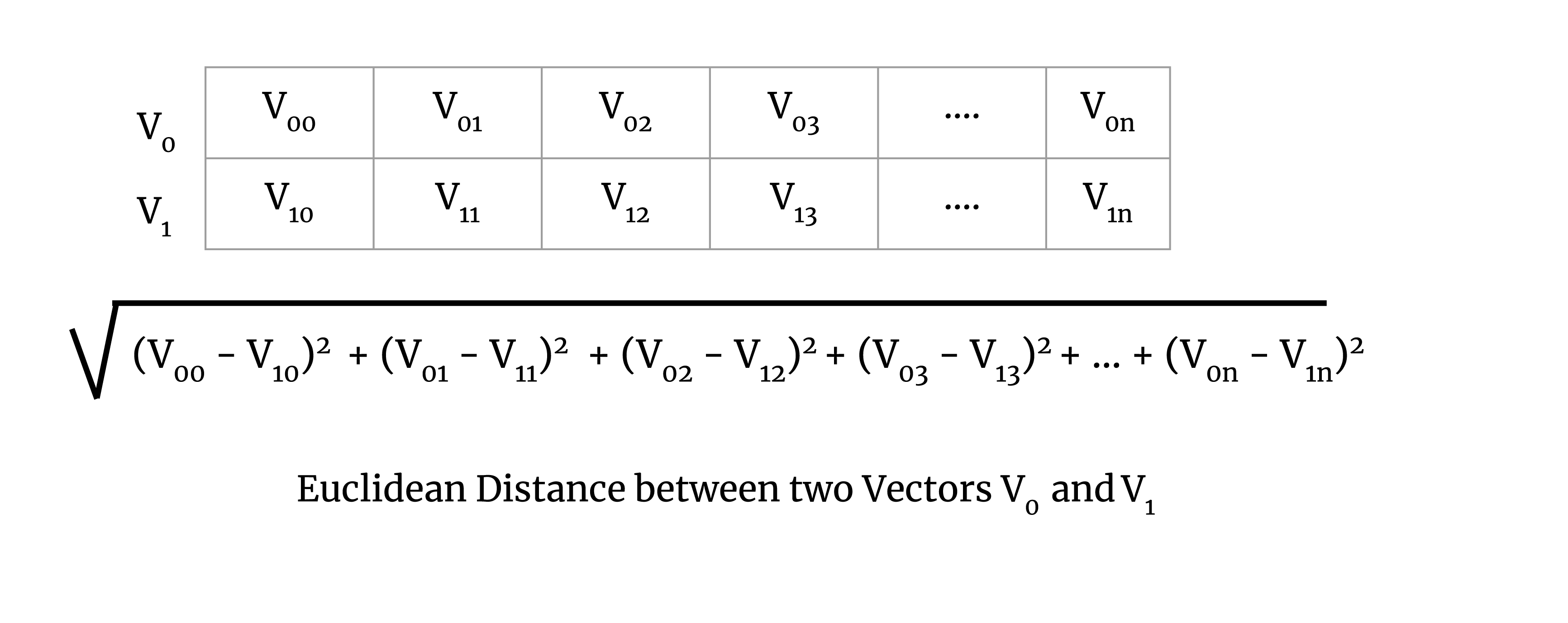 Now to understand map-reduce on a chunk of a large matrix, let's try to understand it with a simple example of two vectors. To perform the map step of the map-reduce algorithm for Euclidean distance, we calculate the squared sum of a pair of vectors, which is demonstrated in the image below: