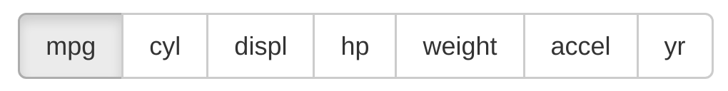 Let's make an app which toggles the axes of the plot. First we'll make the radio buttons to toggle the axis.