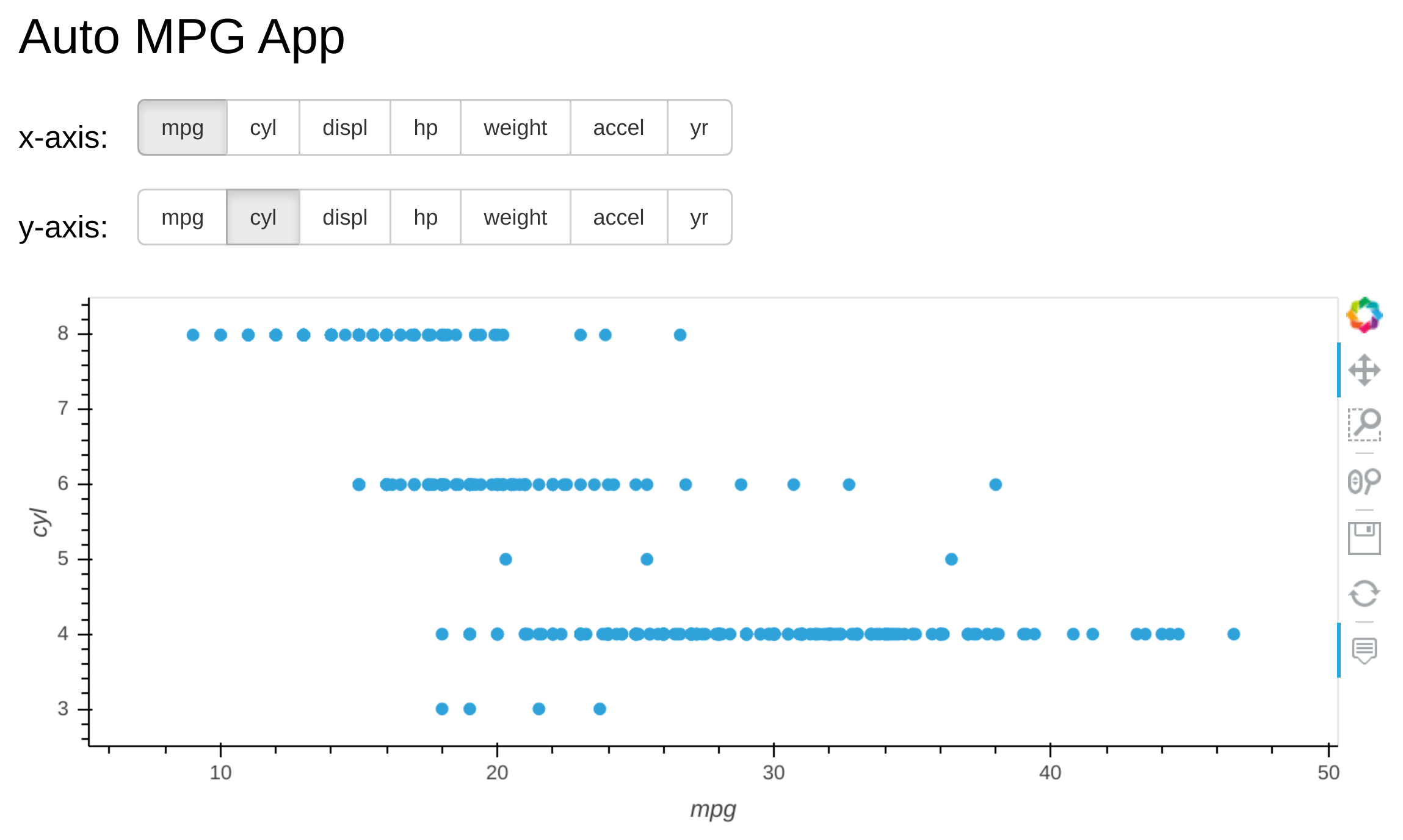 Be careful about running the above cell multiple times. Doing so will attach multiple function callbacks to the radio button, and the app may not behave as expected. Restarting the kernel and rerunning the cells will fix this.
